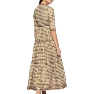 W for Woman Women’s Acrylic W Brown Round Neck Gathered Dress Maxi