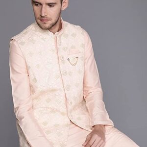 Manyavar Kurta Jacket Set for Men, Full Sleeves Mandarin Collar Ethnic Wear Jacket Set for Festival, Wedding, Party Blended Viscose (Pink)