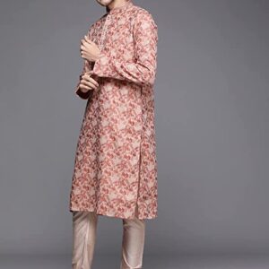 Manyavar Kurta Set for Men, Full Sleeves Mandarin Collar Ethnic Kurta Set for Engagement, Wedding, Party Printed