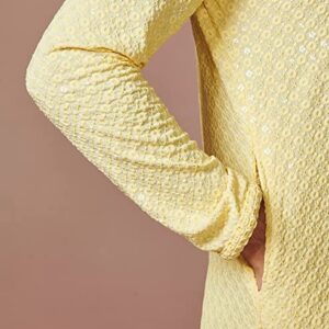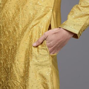 Manyavar Kurta Set for Men, Full Sleeves Mandarin Collar Ethnic Kurta Set for Engagement, Wedding, Party All Over Self Design (Mustard)