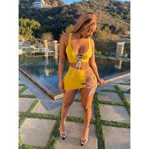 HONEY BABY Women's Printed Bandhani Chiffon Saree, Yellow Red
