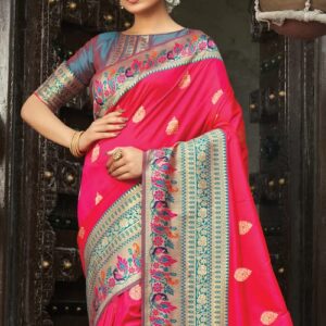 KARAGIRI Women's Woven Cotton Blend Saree with Blouse (KRGRSHWETAMBARISILK2206_Ruby Pink)