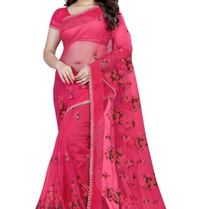 Bollyclues Women’s Mono Net Embroidered And Pearl Work Saree (Mc-1199_Free Size)