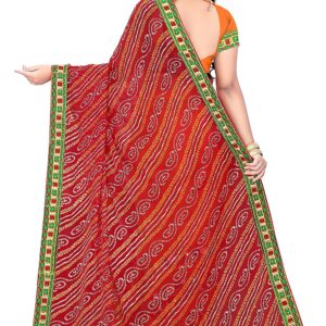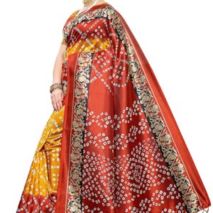 HONEY BABY Women’s Printed Bandhani Chiffon Saree, Yellow Red