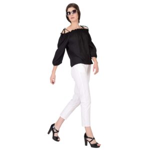 SIGHTBOMB Cold Shoulder Corset Seam Full Sleeve Ribbed Tops for Women