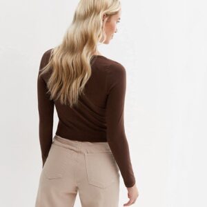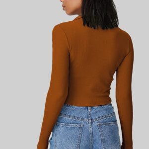 SIGHTBOMB Cold Shoulder Corset Seam Full Sleeve Ribbed Tops for Women