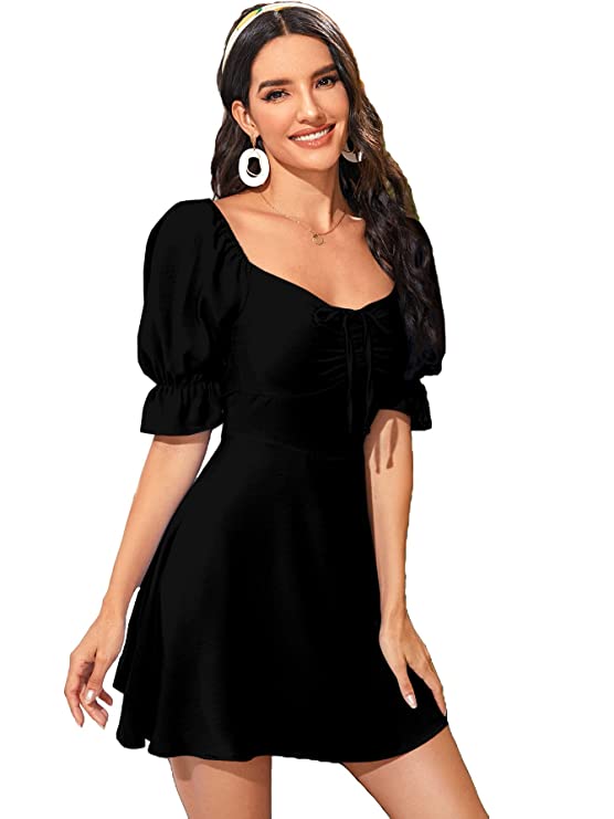 Aahwan Women’s & Girls’ Black Solid Ruched Detail A-line Mini Dress