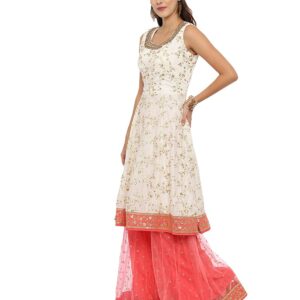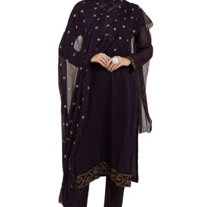 Top Is Full Thread Work, Stone Work In Front And Neck With Moti Work Front Slit ,2 Side Slit And Inner Is Flore Length.Chickoo Brown Colour Dress With Same Colour Duaptta And Soft Material Leggins.