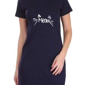 Tees World |Meow| Graphic Printed Bio-Washed Pure Cotton Knee Length T-Shirt Dress for Women and Girls |
