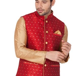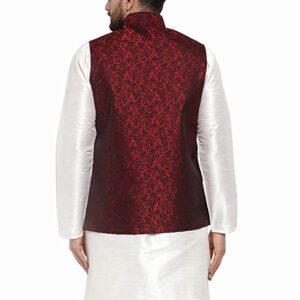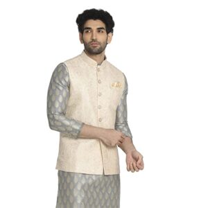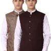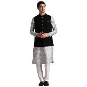 Look your ethnic best wearing this navy colored bundi from the house of Ethnix. The blend of 55% cotton and 45% linen fabric lends this bundi a subtle sheen and lightweight feel. Offering a great fit, this bundi will go well with a white colored kurta-churidar set.