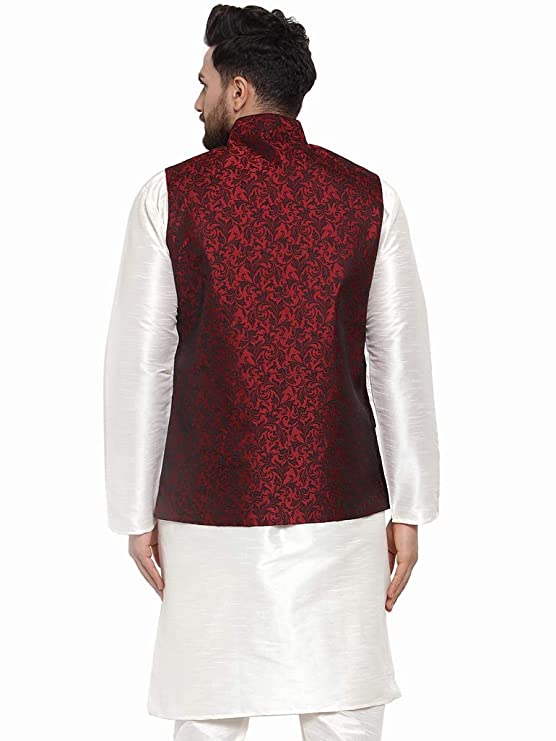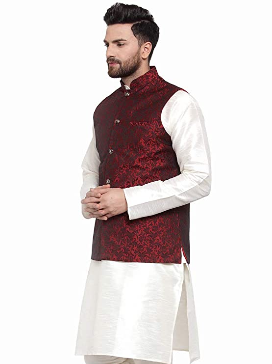 Look your ethnic best by wearing this Nehru jacket from Jompers, which has been designed keeping the latest trends in mind. Tailored from fine quality fabric and fashioned with a banded collar for a dash of style. This Nehru jacket is comfortable to wear and easy to maintain. Layer it over any outfit for a contemporary look. It is a great addition to your wardrobe and will win you compliments from one and all.