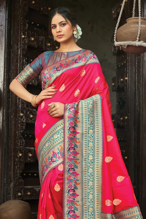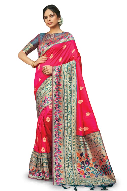 KARAGIRI Women’s Woven Cotton Blend Saree with Blouse (KRGRSHWETAMBARISILK2206_Ruby Pink)