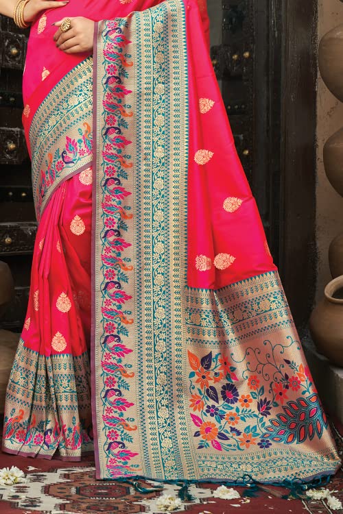 Saree details- Saree Color: Pink | Material: Blended Silk | Length: 5.5 | Print: | Work Type: Zari Woven Work
