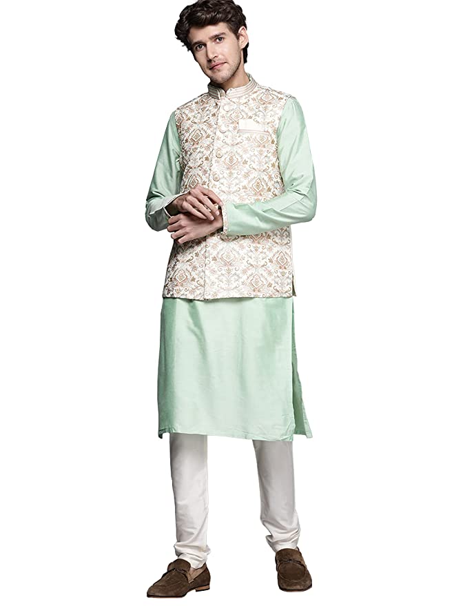 Want to have a dedicated light colored outfit for your day occasions? Try out this beige kurta jacket and make your event a fashion success.