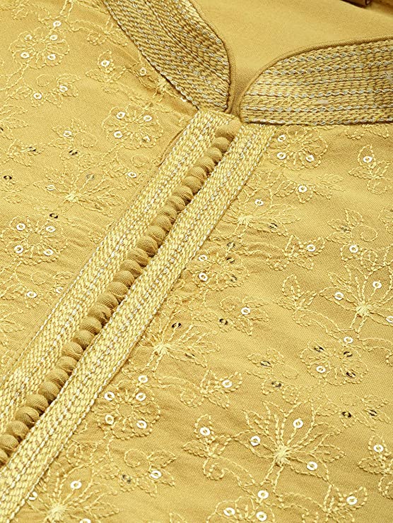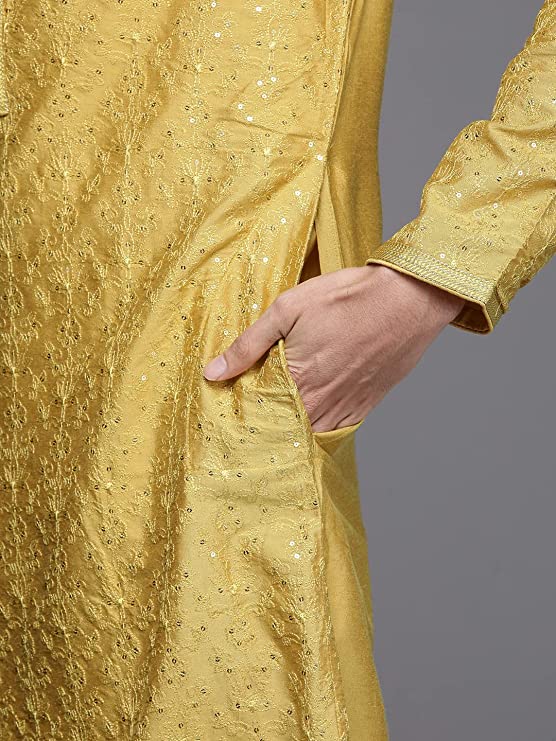 Impress everyone with your amazing fashion sense by donning this Kurta set for men. Tailored from finest fabric and fashioned with a chinese collar for a dash of style. It is a great addition to your wardrobe and will win you compliments from one and all Perfect for Gifting: Show the unmatched joy of your happiness to your loved ones by gifting this royal & elegant Kurta by Manyavar. Give your friend, brother, dad, or husband a charming feel with our imperial collection of readymade kurta set, kurta, and more. With many appealing colors and fabrics to choose from, your special one will surely outshine everyone else. In the fast-paced world, traditional Indian styles need to be flaunted with a twist. Manyavar brings to you its range of traditional and Indo-Western outfits, a perfect blend of royal and festive designs emulated into trendy traditional wear for you.