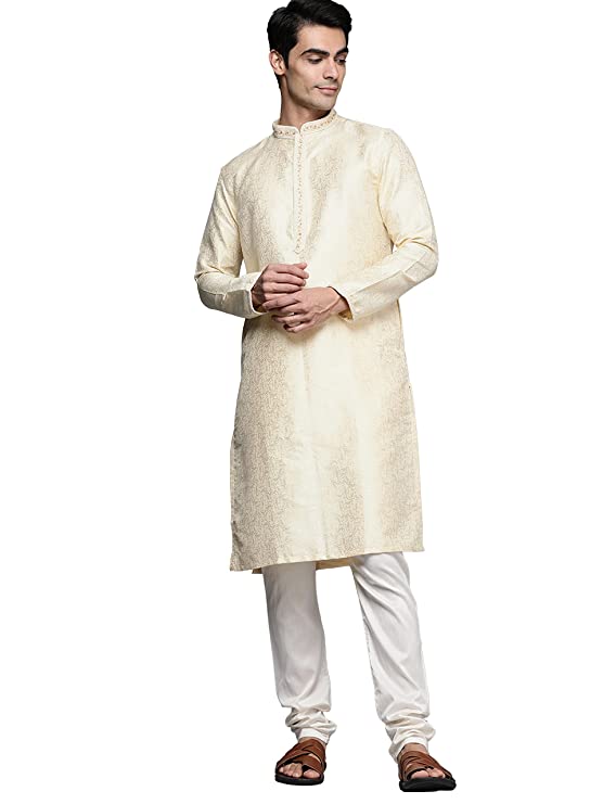 Impress everyone with your amazing fashion sense by donning this Kurta set for men. Tailored from finest fabric and fashioned with a chinese collar for a dash of style. It is a great addition to your wardrobe and will win you compliments from one and all Perfect for Gifting: Show the unmatched joy of your happiness to your loved ones by gifting this royal & elegant Kurta by Manyavar. Give your friend, brother, dad, or husband a charming feel with our imperial collection of readymade kurta set, kurta, and more. With many appealing colors and fabrics to choose from, your special one will surely outshine everyone else. In the fast-paced world, traditional Indian styles need to be flaunted with a twist. Manyavar brings to you its range of traditional and Indo-Western outfits, a perfect blend of royal and festive designs emulated into trendy traditional wear for you.