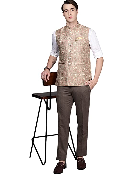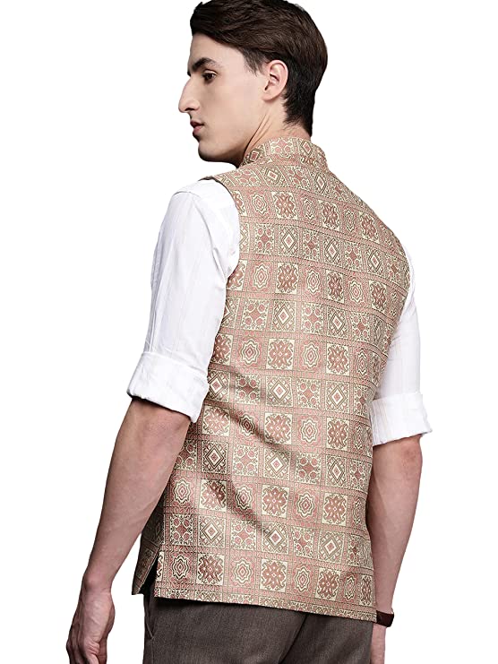 Manyavar PISTA Sleeveless Mandarin Collar Jacket