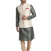 VASTRAMAY Men’s Cream Cotton Silk Blend Ethnic Jacket