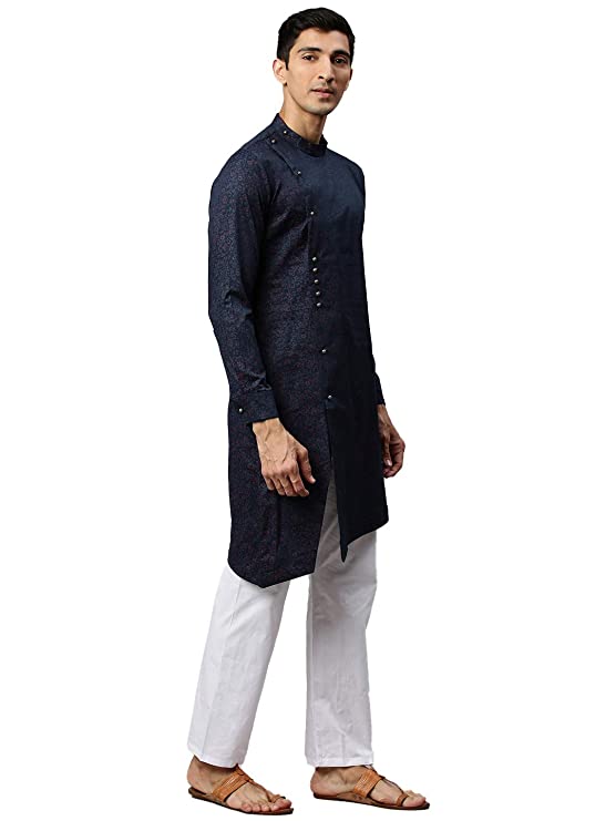 Look your ethnic best by wearing this nehru jacket from Manyavar, which has been designed keeping the latest trends in mind. Tailored from fine quality fabric and fashioned with a banded collar for a dash of style. This jacket is comfortable to wear and easy to maintain. Layer it over any outfit for a contemporary look. It goes best with ethnic kurta-pyjama or churidar. It is a great addition to your wardrobe and will win you compliments from one and all.