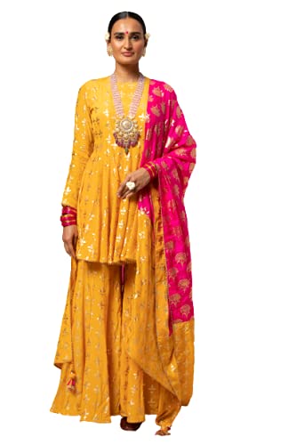 Pranaya Women’s Georgette Suit with Palazzo (P29, Green, Medium)