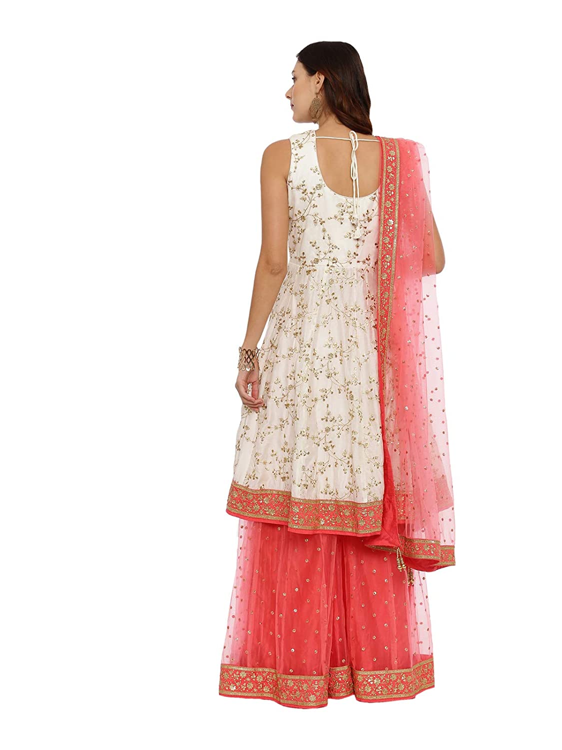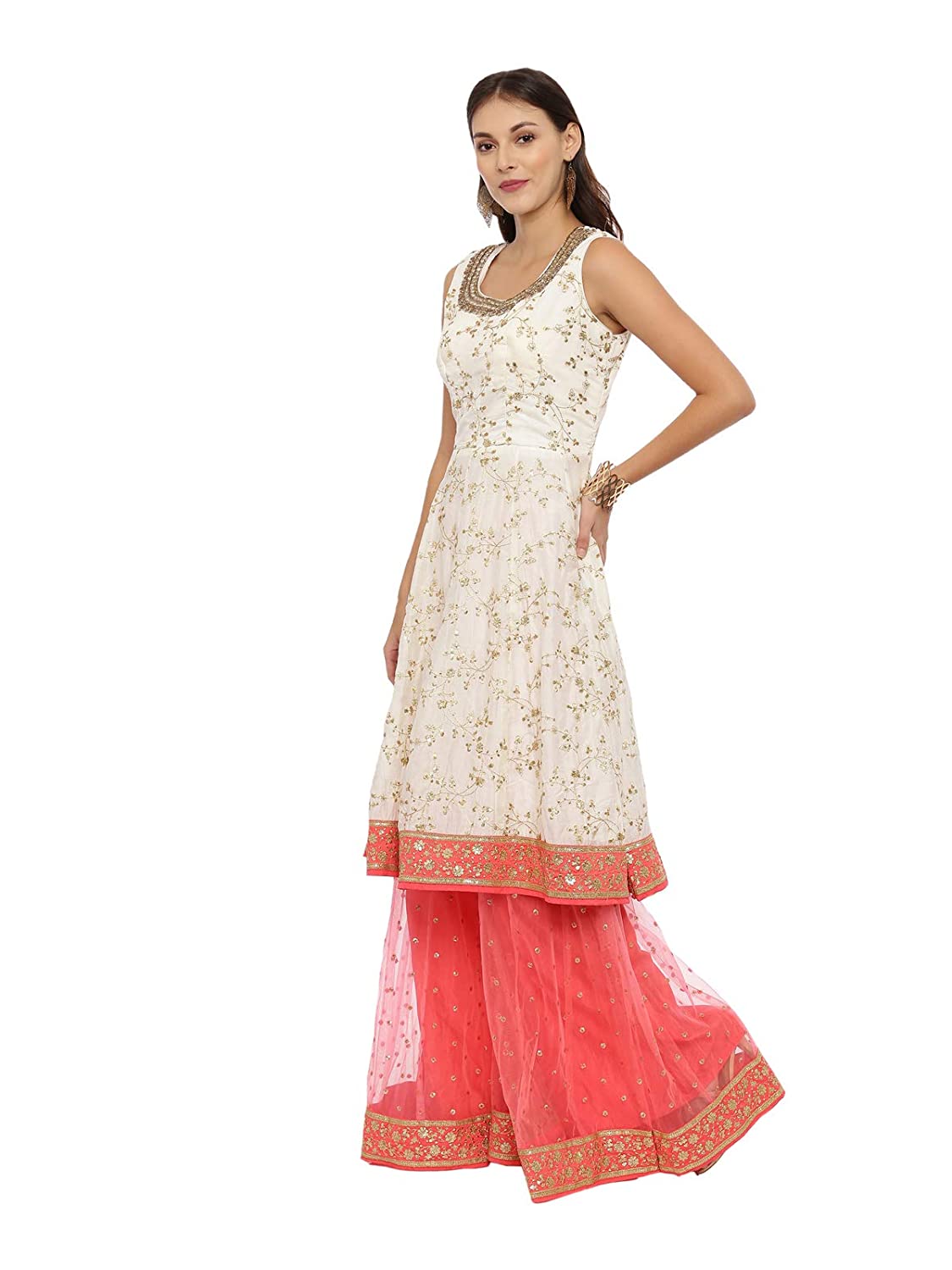 NEERU’S CREAM Embroidered A-Line salwarsuitset