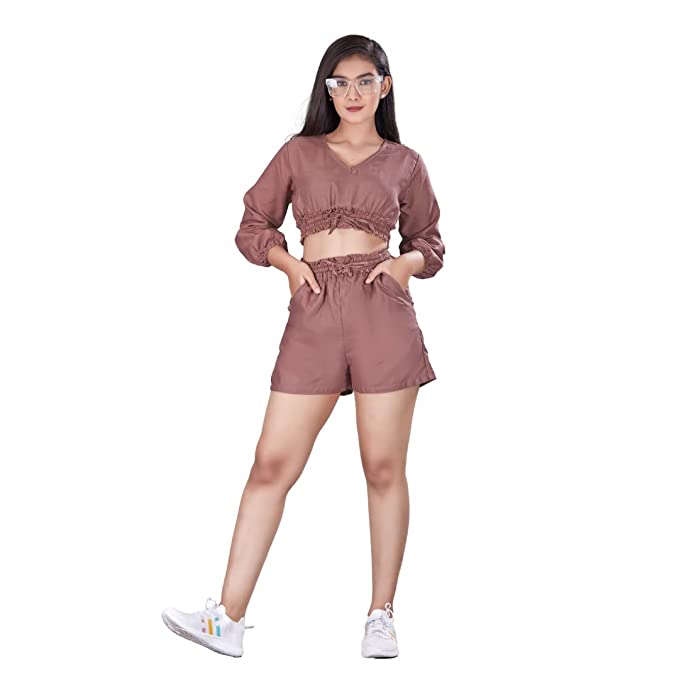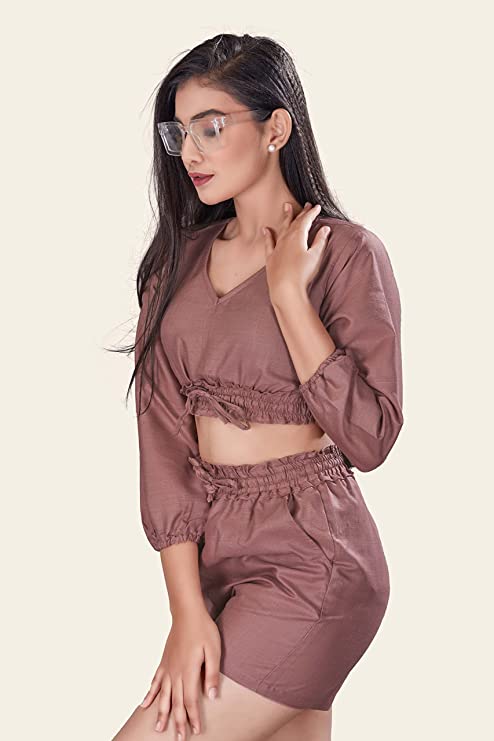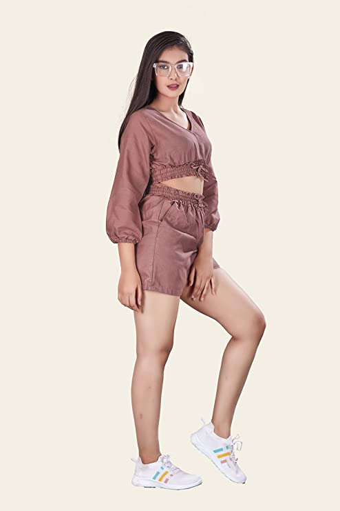 StyleTwo Piece Dress Cotton Long Sleeves V-Neck Top and Shorts – Travel Edition