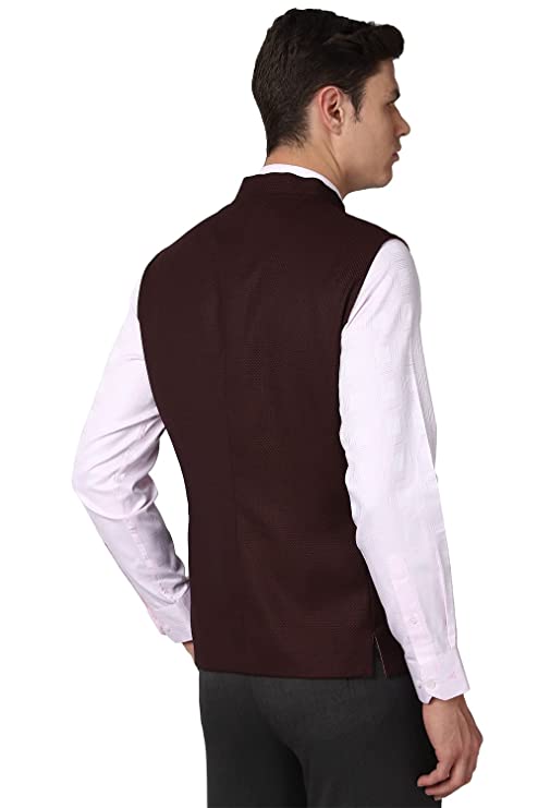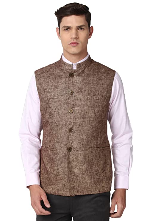 Give a smart finish to your ensemble in these Brown Textured Nehru Jacket from Van Heusen by Van Heusen.