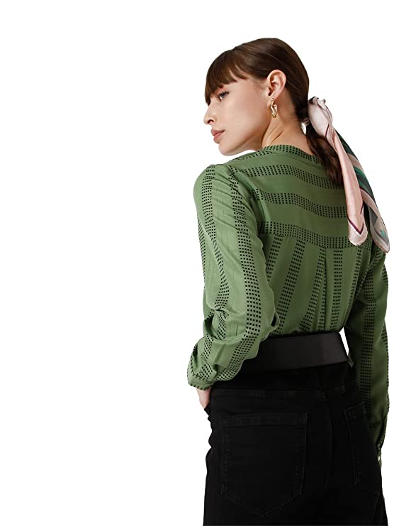 This top for women comes with madarin collar and V neckline and long sleeves is perfect for casual days. Style it with black jeans and sneakers.