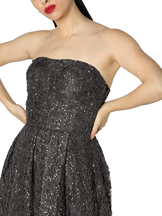 SIRIL Women’s Dyed Fit & Flare Knee Length Russell Net Dress