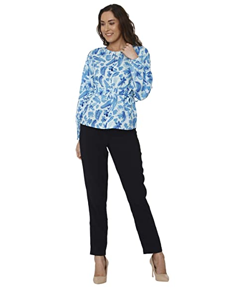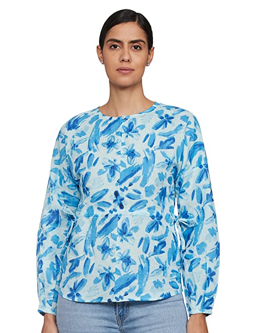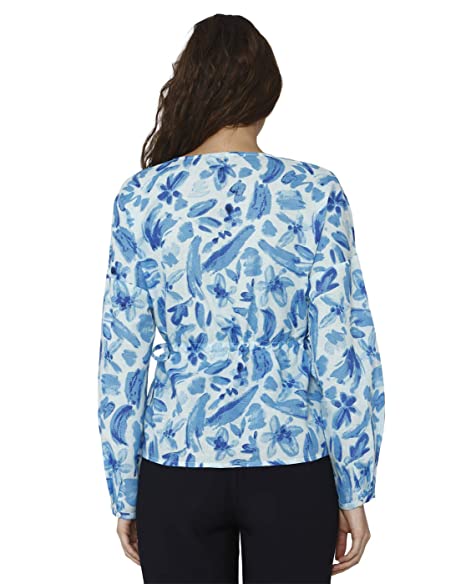 Vero Moda Women Blue Floral Printed Round Neck Long Sleeves Regular Fit Cropped / Short Casual Wear Top