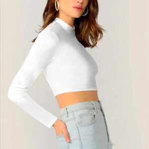 Dream Beauty Fashion Women’s Round High Neck Full Sleeves Stylish Crop Top Polyester Blend Tshirt (16″ Inches)