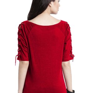 DHRUVI TRENDZ Women’s Plain Lycra with Dori Design on Half-Sleeve Regular Fit Office wear,Casual wear Top