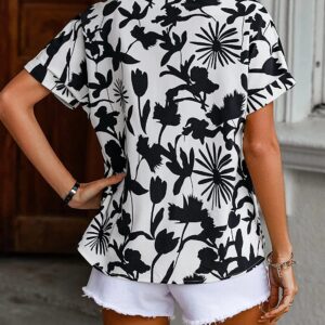Greciilooks Women’s Casual Digital Printed Shirt Ruffle Sleeve Tops | Floral Printed Shaded Shirt for Women |Casual Short Sleeve Oversized Blouses Tops